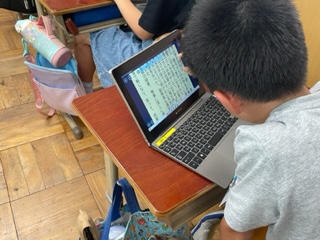 漢字の広場での文章作りもタブレットで行ってみました。