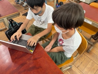 友達と協力して作文作りに励んでいました。