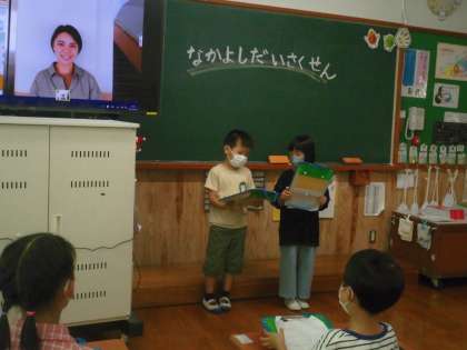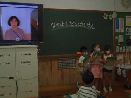 先生が学校でどのような仕事をしておられるのか、先生が小学生のときに好きだった遊びなど、聞いたこやそしてなかよくなったことをクラスで発表しています。