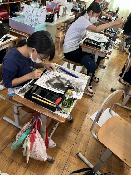 墨と水を混ぜながらさまざまな表現の仕方を楽しみながら確認しました。