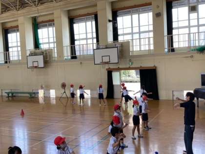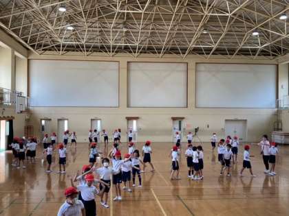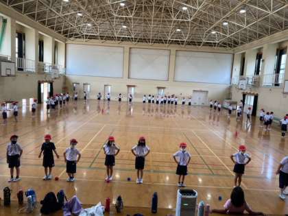台風は過ぎ去っていましたが、地面の状態などから体育館で全体練習をしました。