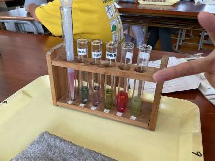 紫キャベツを使って何性かを調べました。
