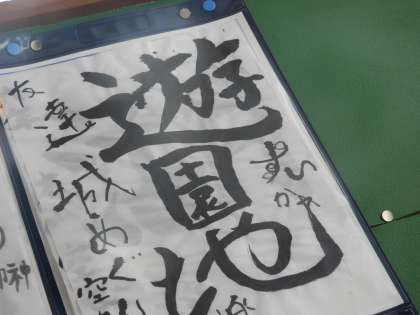 夏の思い出を習字で書きました。今回は自由にイメージを大切にした作品作りをしました。
