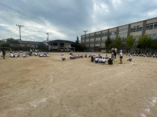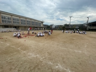 玉入れの競技は、少し遠めから狙いを定めて入れなければなりません。
