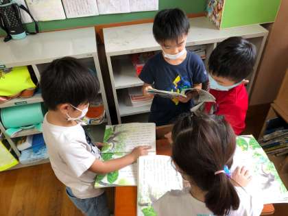 「くんねり」という言葉から、あおむしの動き方を想像したり、あおむし達の言い合いの場面では怒った声で言ったりと様々な工夫をしながら練習をしていました。