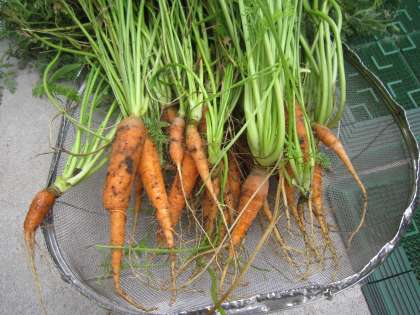 人参の収穫に成功しました。ふさふさの葉っぱには,青虫がいっぱいついていてびっくり!