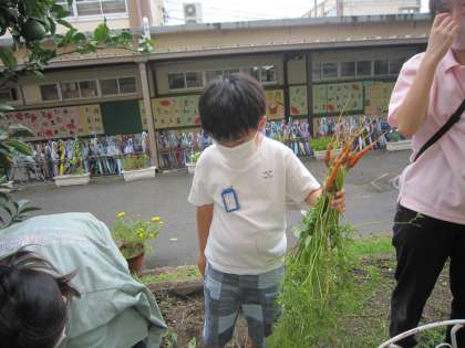 土の中の人参はりっぱにそだっていました。来週は人参でおやつ作りをします。
