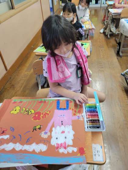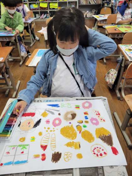 入学した頃よりもクレヨンを使って丁寧に色をぬったり,色を重ねたりして工夫する姿が増えました。