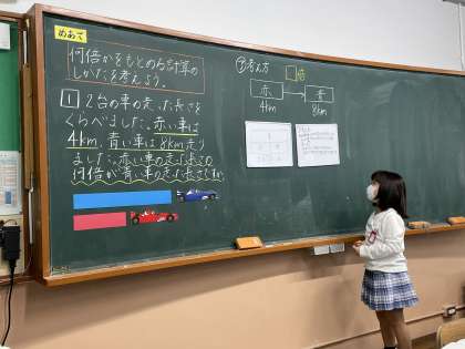 何倍かを求めるときは図を使うとわかりやすいことに気づき、計算のしかたを考えることができました。