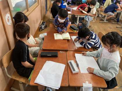 アーノルド=ローベル作の本から役になりきって音読劇の練習をしています。