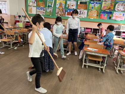 たてわりタイムの時間には、上級生や下級生が関わり合いながら、掃除をしたり、リレーや鬼ごっこをして遊んだりするなど、みんな仲良く取り組むことができました。