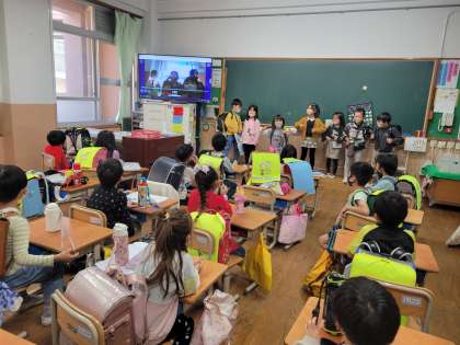 帰りの会で、ダンス係が「3びきのこぶた」の手遊びをGIGA端末のロイロノートを活用して披露してくれました。