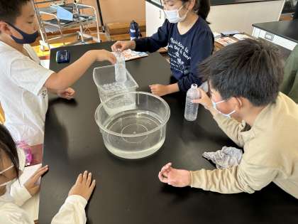 ペットボトルがへこんだり少しふくらんだりする様子を確かめていました。