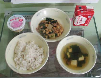 ※今日は給食費の価格調整のため、「ももゼリー」を追加しています。