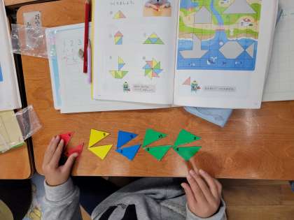 三角形を重ねるといろいろな形ができることを知りました。
