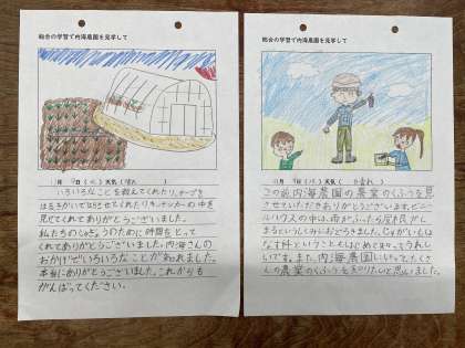 先日、総合的な学習の時間に地域の「うつみ農園」に行かせていただいき、お礼の手紙を書きました。たくさんのお話を聞き、子どもたちは、「うつみ農園の野菜を食べてみたい!」「自動販売機で缶詰や野菜を買ってみたい!」という思いを強く持っていました。