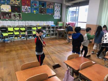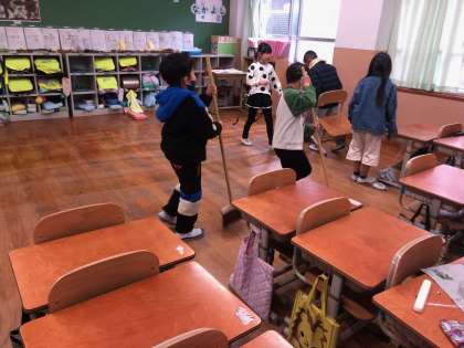 最近の掃除時間は、子どもたちで声をかけあって進めることができるようになりました。今日のほうきの班は「ほうきシュッシュ。」と声を掛け合いながら元気に掃く姿を見ることができました。
