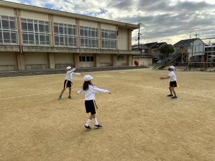 普段使っているボールとは形が違うのでどうやって投げるとまっすぐ飛ぶのか、いろいろと投げ方を工夫しながら取り組んでいました。