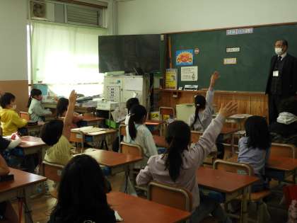 よいことよくないことについて警察の方と考えました。自分の考えを発表する姿が見られました。