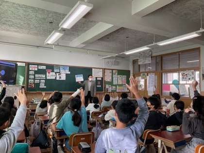 「正」の漢字の意味を通して、一歩立ち止まって正しい行いについて考えを深めました。