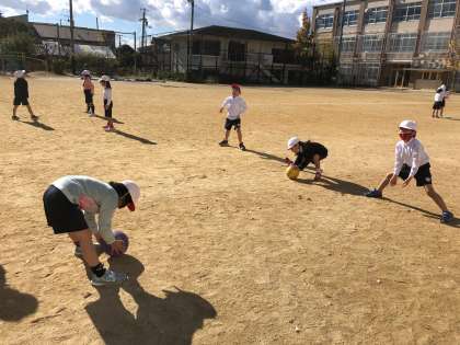 体育科「ボール遊び」では転がしパス、ワンバウンドパス、ノーバウンドパスなどいろいろなボールの投げ方に挑戦しました。