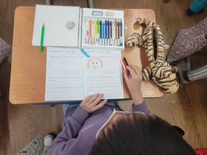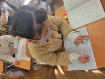 本日の生活科の時間に、家族の顔を思い浮かべながらイラストだけ記入しました。