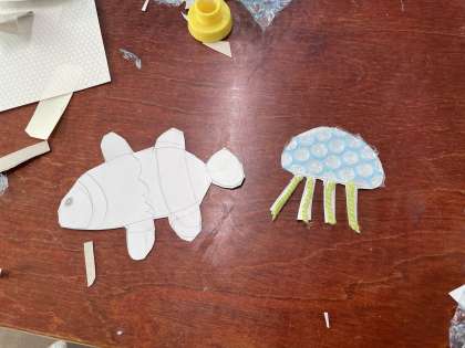 版の形や材料の組み合わせを考え、紙版画を作っています。