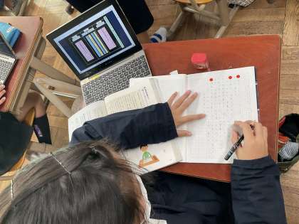 思考ツールを使って、自分の考えや思いを整理しました。それをもとに、文章構成を意識して、意見文を書きました。