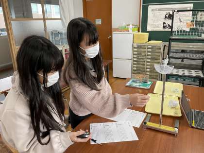 おもりの重さをかえたり、角度を変えたりして、実験結果をまとめました。
