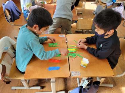 10のまとまりをつくるときも「2・4・6・8・10」と2とびで数えていた子どもたち。