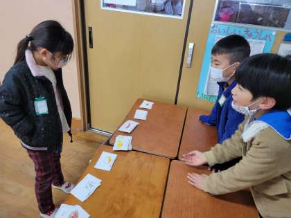国語科「ものの名まえ」の学習のまとめとして、おみせやさんごっこをしました。