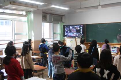 今日から3学期が始まりました。しっかりと校長先生の話を聞いています。