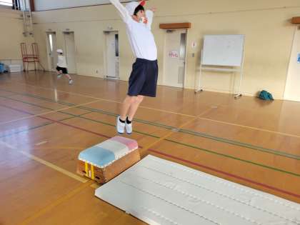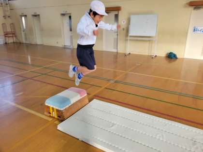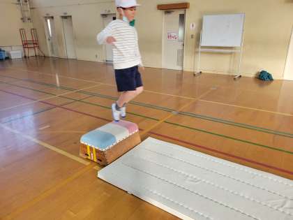 勢いよく踏み切ったあと、両足で着地する練習をしました。
