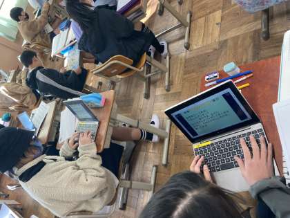 たくさん本を借りて、おすすめしたい本を選びました。前回までの学習で学んだことを活かし、おすすめしたい相手に伝わるような表現を考えてポスター作りに励んでいます。