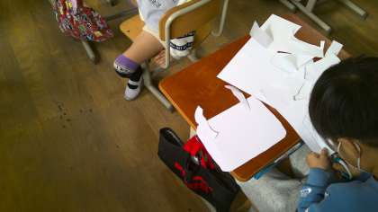 「たのしくうつして」の学習で版画をするために鬼の版画を作りました。