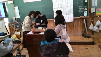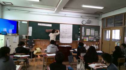 実際に琴を演奏してみたい人は演奏したり、タブレットで演奏したりしました。「さくら」の音楽を「七七八・・・」と楽譜を見たり覚えたりして楽しんで演奏していました。