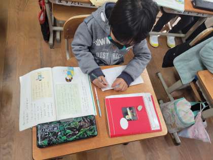 1年生になって嬉しかったことや、楽しかったことを伝える「てがみ」を書く学習に取り組みます。