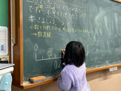 小数と分数を比べるときには、数直線上に表したり、0.1が何個になるのか、1/10が何個になるのかを考えるとよいことが分かりました。