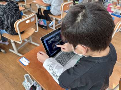 算数科で百までの大きな数を学習しています。駄菓子屋さんに行ってお金を払うとしたら、どのようなお金の組み合わせができるか考えました。「10円玉を5枚と1円玉2枚払えばいいな。」「50円玉の方がはやいよ。」などと声をかけあい、ロイロノートを使いお金を出す練習をしました。