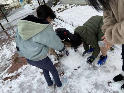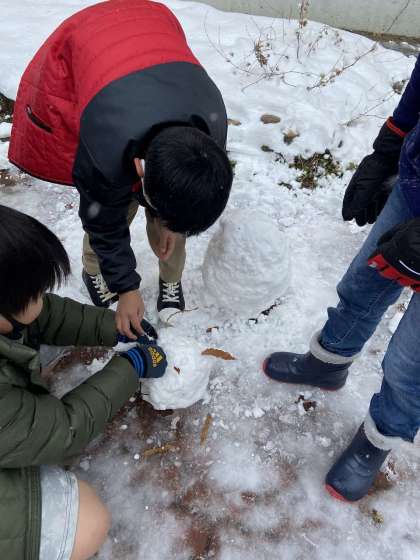 友達と協力して雪ダルマを作ったり、雪の作品を作ったり、思い思いに雪に触れました。