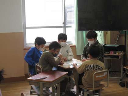 今日の昼休みは教室ですごしました。昔遊びの学習をもとに、すごろく・百人一首を楽しみました。