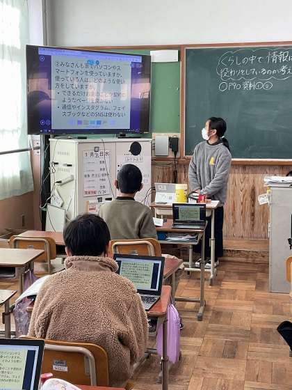 スマートフォン・SNS・パソコンの普及率の変化について調べました。そして、それらの使い方について考えることができました。