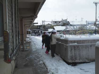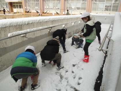 雪をさわって握るとキュッキュと音がして、「かたくり粉みたい」と新しい発見をしました。