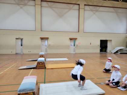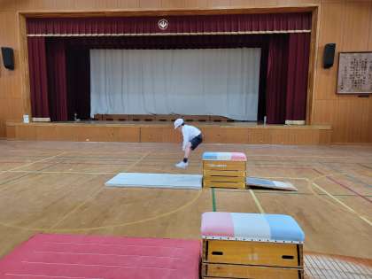 「ぼくは、手が滑らないようにパーンと、とびばこをたたくようにとびました。」
