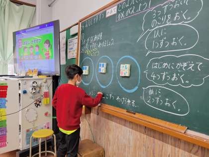 みんなに同じ数ずつクッキーを配る方法を考えて説明しました。