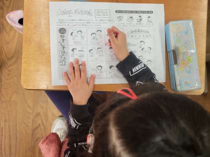 保健だよりの「やさしさビンゴ」に取り組んだ子どもたち。