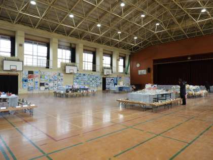 図工展では、子どもたちの素敵な立体作品と平面作品が並んでいます。明日までの開催となっています。