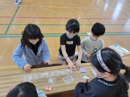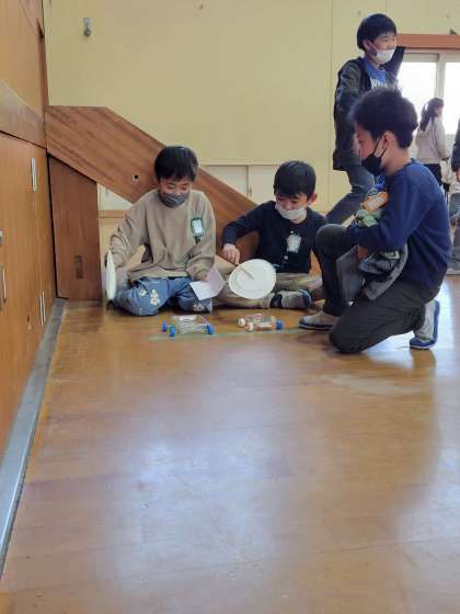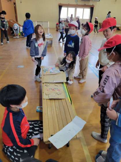 生活科の学習で2年生が取り組んだおもちゃ作り。