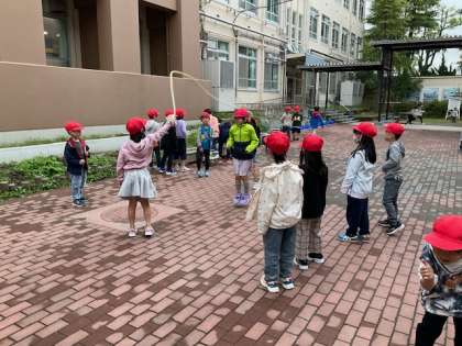 大縄をしたり、だるまさんがころんだをしたりして楽しんでいる様子が