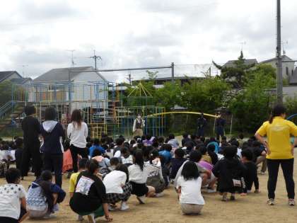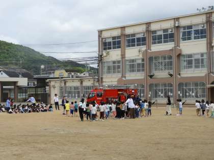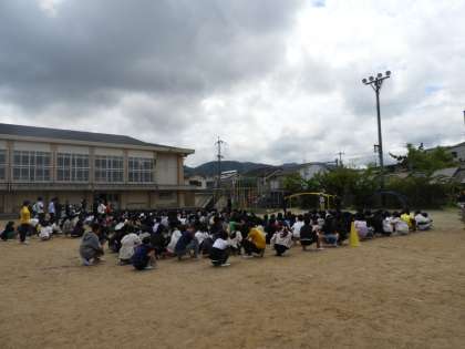 火災を想定して避難訓練をしました。訓練は本番のように、本番は訓練のようにを意識して、話を聞きました。